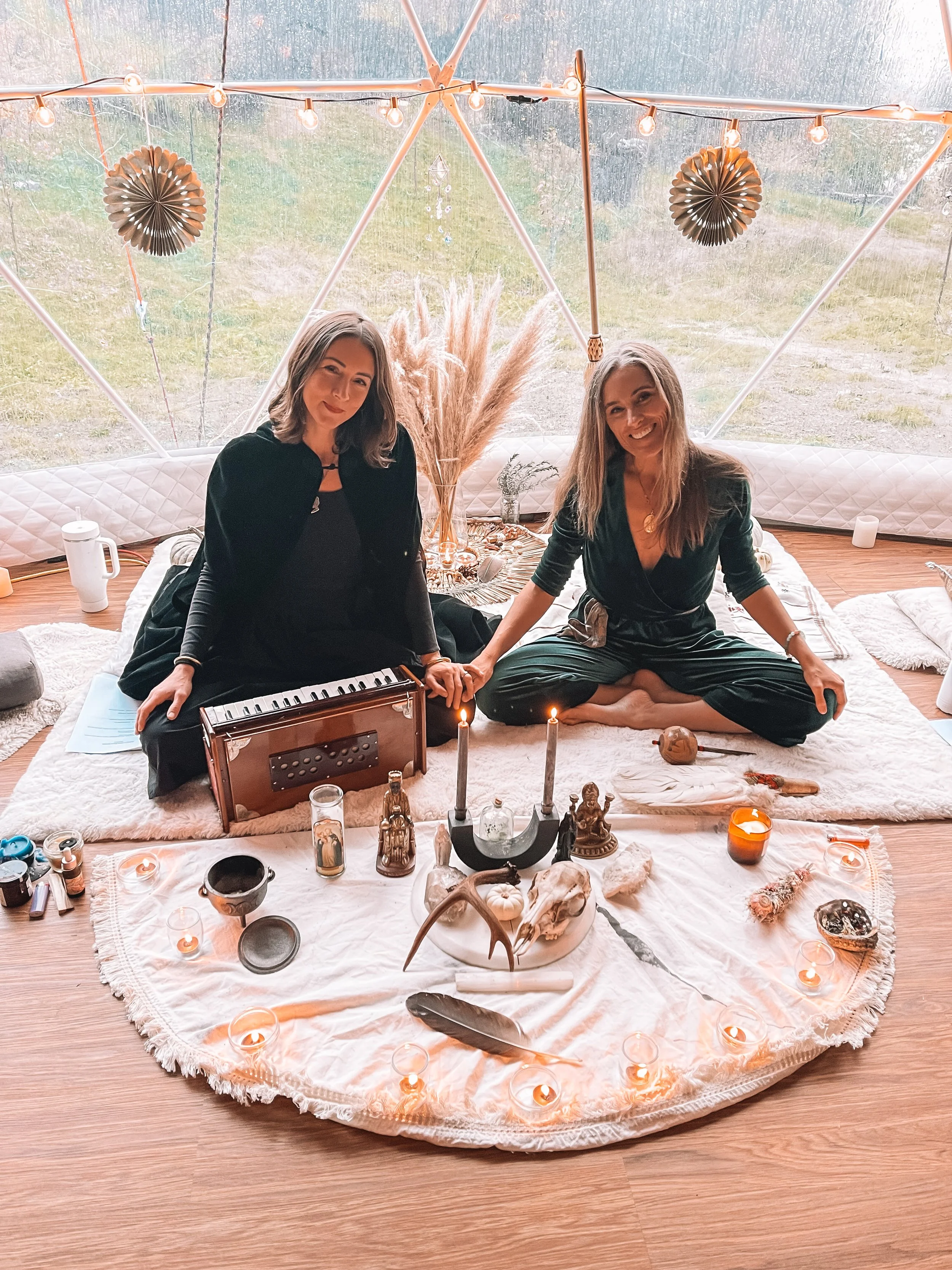 Chantal Russell and Alli Mary have enjoyed leading sacred ceremonies together, honoring the turning of the wheel of the year and the feminine mysteries, guiding women to reconnect with the magic, rhythm, and aliveness of life. They are passionate about leading movement and ritual, creating embodied experiences that open the body, heart, and spirit.